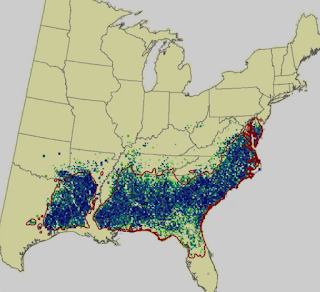| The U.S. Pine Belt is filled with fast-growing Loblolly pines. (Reddit map) |